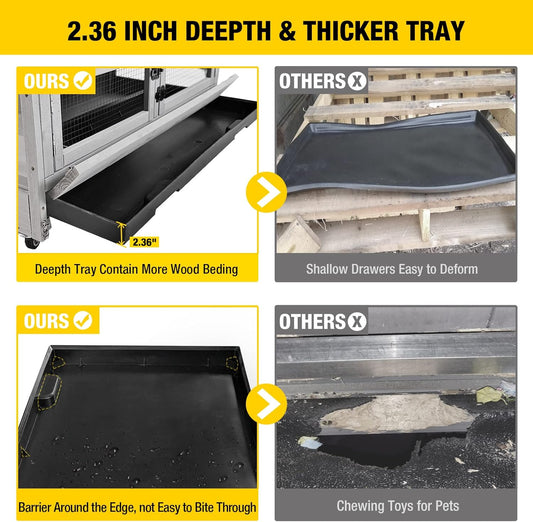 Aivituvin Outdoor Rabbit Hutch, Wooden Bunny Cages Indoor with Deeper Leakproof Tray - Upgrade with Metal Wire Pan
