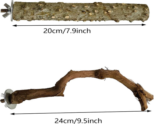 Allazone 5 PCS Natural Wooden Parrot Stand Bird Perch Stand Grape Stick Hanging Multi Branch Perch for Parrots, Bird Cage Accessories