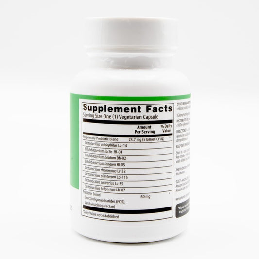 Amazon Basics - Probiotic, 5 Billion CFU, 8 Probiotic strains with 60 mg Prebiotic Blend, 60 Count Vegetarian Capsules, 2 Month Supply, Supports Healthy Digestion (Previously Solimo)