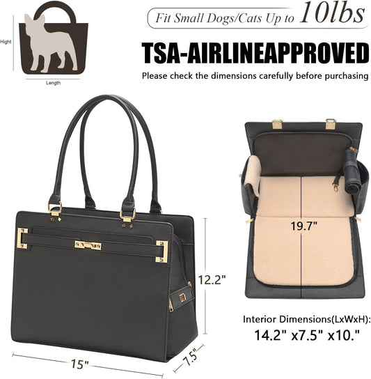 2-in-1 Stylish Dog Purse Carrier Soft-Sided Carriers Travel Tote Bag for Small Dogs Cats, Fashion Foldable Pet Bag for Puppies Small Animals with Pockets (Black, 15" L x 7.5" W x 12.2" H)