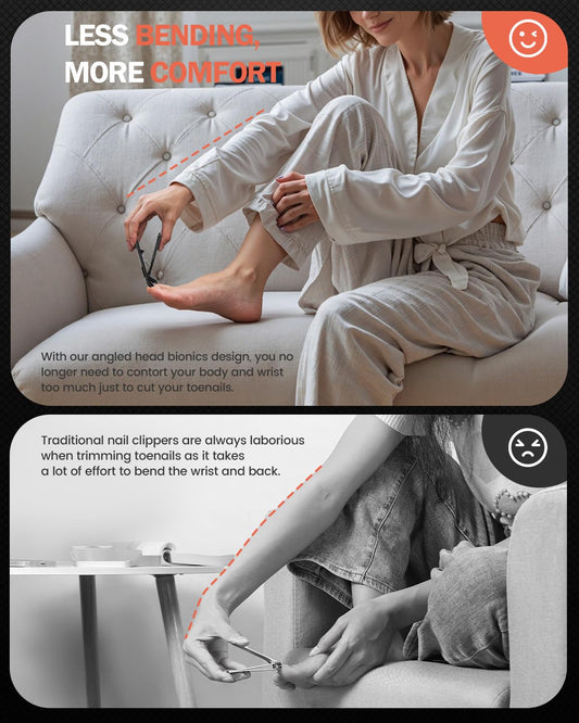 BEZOX Angled Head Toe Nail Clippers for Seniors for Thick Nails - Ergonomic Toenails Clipper for Thick Toenails, Premium Finger Nails Clipper for Adult with Catcher - Black