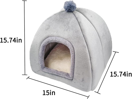 Cat Bed for Indoor Cats,Foldable cat cave,Anti-Slip & Water-Resistant Bottom,cat Houses for Indoor Cats or Small Dogs, Kitten Tent, Rabbit Bed,2 in 1 pet Bed (Grey)