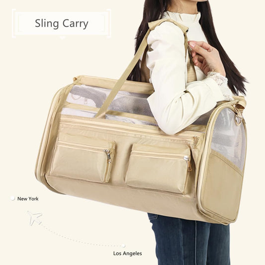 Cat Carrier Bag, Foldable Pet Bag Airline Approved, Pet Travel Carrier for Medium Cats Small Cats Dogs, Sturdy Transport Carriers Long Trips(Brown)