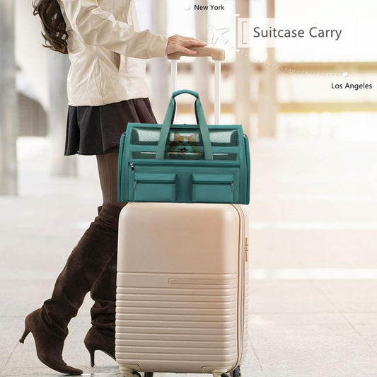 Cat Carrier Bag, Foldable Pet Bag Airline Approved, Pet Travel Carrier for Medium Cats Small Cats Dogs, Sturdy Transport Carriers Long Trips(Green)