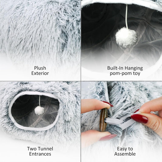 Cat Donut Bed with Washable Cushion – Cat Caves for Indoor Cats – Collapsible Donut Bed with Peekaboo Pet Tunnel & Tunnel Toy – Cozy Hideout for Kittens, Ferrets, Rabbits & Dogs – Grey
