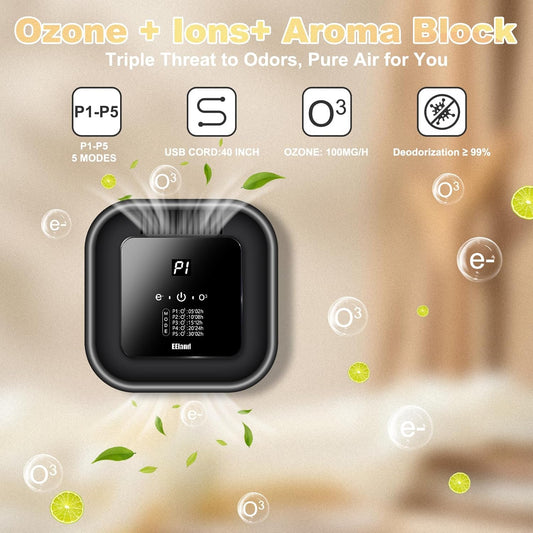 Cat Litter Deodorizer – 99% Odor Removal, Ozone Air Purifier for Pets, Strong Odor Eliminator for Litter Box, Toilet, Closet, Cabinet, Shoe, Garage, Small Room – Black