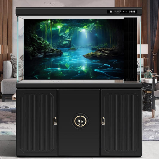 Cave Aquarium Background Underwater Cave with Light Beam Tranquil Stream Terrarium Background Mysterious Elegant Fantasy Tropical Plants Fish Tank Backdrop Wallpaper Poster Decorations Vinyl 30x12in