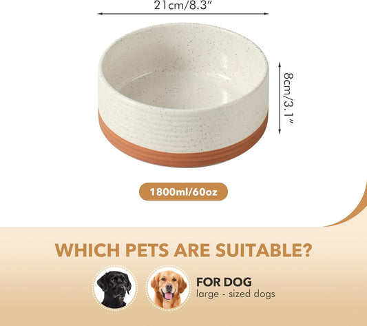 Ceramic 8.2inch Dog Bowl for Large-Breed Dogs, Anti-Slip and Weighted Pet Food and Water Bowl (Single Bowl - Beige)