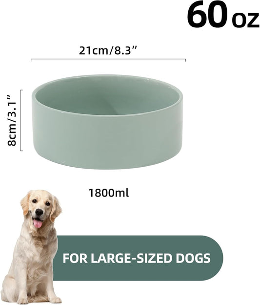 Ceramic 8.2inch Dog Bowl for Large-Breed Dogs, Anti-Slip and Weighted Pet Food and Water Bowl (Single Bowl - Light Green)
