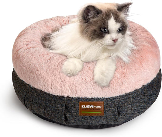 ClevaHome Cozy Cat Bed - Ultra-Soft Plush Pet Bed with Raised Sides and Anti-Slip Base, Comfortable Round Bed for Small Pets up to 11 lbs