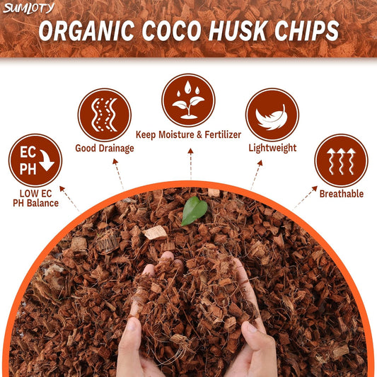 Coco Chips for Plant - 10LB Organic Coconut Husk Chips with Low EC & PH Balanced, High Expansion Coconut Substrate Coco Husk Mulch for Garden, Flowers and Reptile