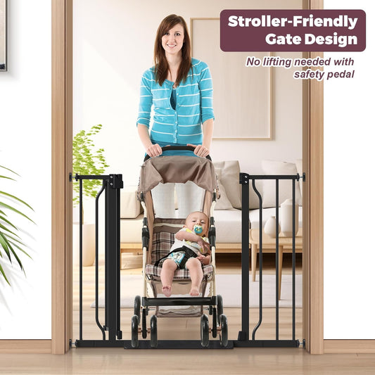 29"-40" Baby Gate for Stairs, Auto Close Stroller Friendly Dog Gate Indoor for Doorways, Pressure Mounted Baby Gate, Easy Walk Through Gate for Children & Pets, Black