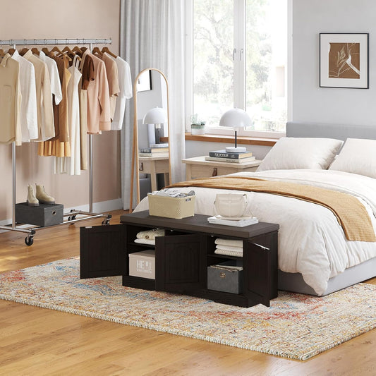 DINZI LVJ Shoe Bench, Entryway Storage Bench with Doors, Cushion, 2-Tier Shoe Rack with 8-Cubby, 47.2”L x 13.8”W Shoe Organizer Cabinet, Adjustable Shelf, Living Room, Bedroom, Espresso