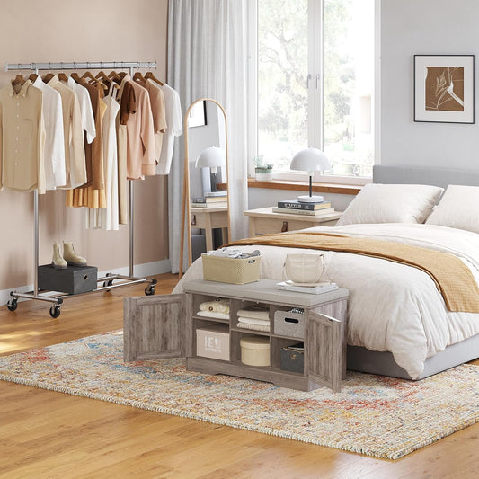 DINZI LVJ Shoe Bench, Entryway Storage Bench with Doors, Cushion, 2-Tier Shoe Rack with 8-Cubby, 47.2”L x 13.8”W Shoe Organizer Cabinet, Adjustable Shelf, Living Room, Bedroom, Gray Wash