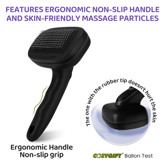 Dog Brush Kit – 3 PCS Grooming Set with Self-Cleaning Brush, Undercoat Rake & Pet Bath Brush. Great for Shedding, Tangles & Dirt Removal – Ideal for Long & Short Haired Dogs & Cats, Black