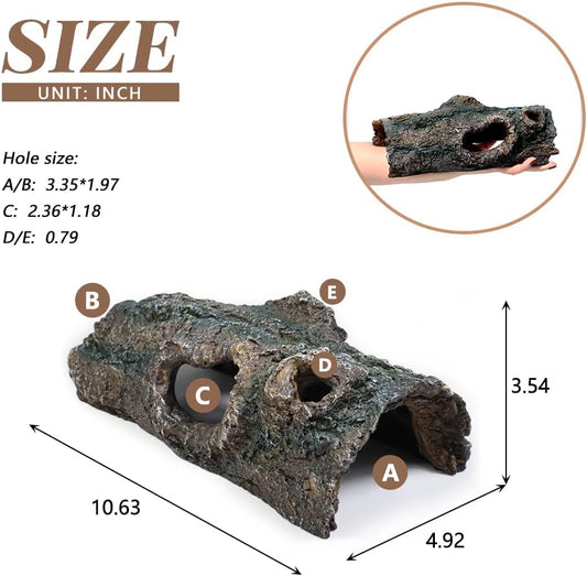 fazhongfa Reptile Hide Tree Trunk Lizard Snake Gecko Axolotl Spider Turtles Bearded Dragon Tank Accessories Large Hollow Log for Aquarium or Fish Tank Resin Wood Decorations Ornament