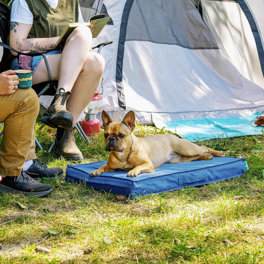 FurHaven Cooling Dog Bed – Large Foam Mattress for Joint Pain Relief, Waterproof Liner, Removable Washable Cover, Durable for Outdoor Use, Deluxe Grid Indoor/Outdoor Bed – Blue, Large