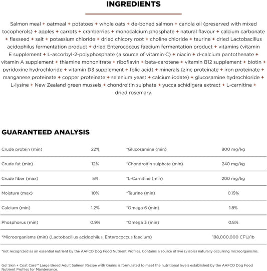Go! Solutions Skin + Coat Care, Dry Dog Food, Large Breed Adult Salmon Recipe with Grains, 12 lb Bag