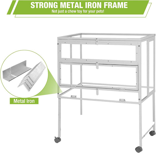 GUTINNEEN Guinea Pig Cage Hamster House with Anti-Chewing Metal Frame Rat Cage with Wheels and Storage