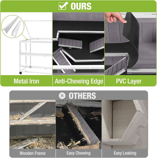 GUTINNEEN Guinea Pig Cage Rabbit Cage Indoor with Chew-Proof Edges, Clean Deep Tray, Leakproof PVC Layer, Small Animals Cage with Adjustable Legs - Grey