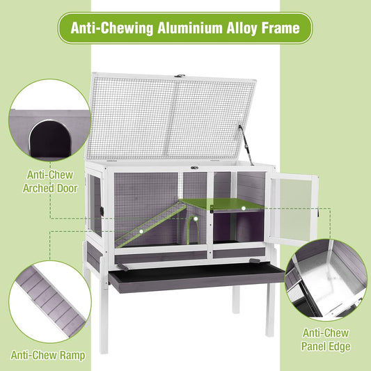 GUTINNEEN Indoor Guinea Pig Cage Rabbit Hutch with Chew-Proof Ramp, 2-Story Wooden Bunny House with Pull-Out Trays & Leakproof PVC Layer, Small Animal Cages with Detachable Legs (Gray)