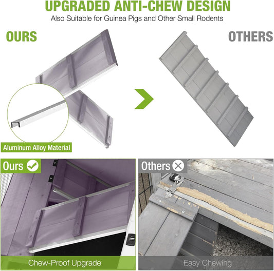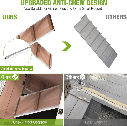 GUTINNEEN Indoor Guinea Pig Cages - Wooden Rabbit Cage Bunny Hutch with Chew-Proof Ramp, Pull-Out Tray, Leakproof PVC Layer & Detachable Legs for Rabbits, Guinea Pigs (Natural Wood)