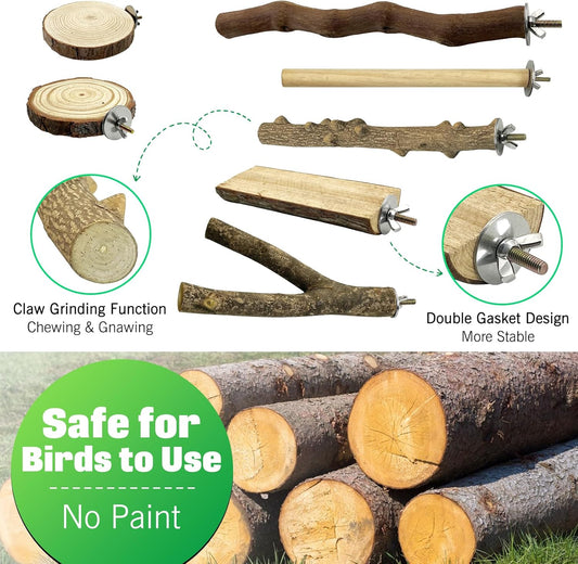 Hamiledyi 10 PCS Natural Wood Bird Perches for Cage Parakeet Stand Bird Cage Accessories Parrot Perch Branch Paw Grinding Fork Parakeet Platform for Small and Medium Sized Birds Budgie Cockatiel