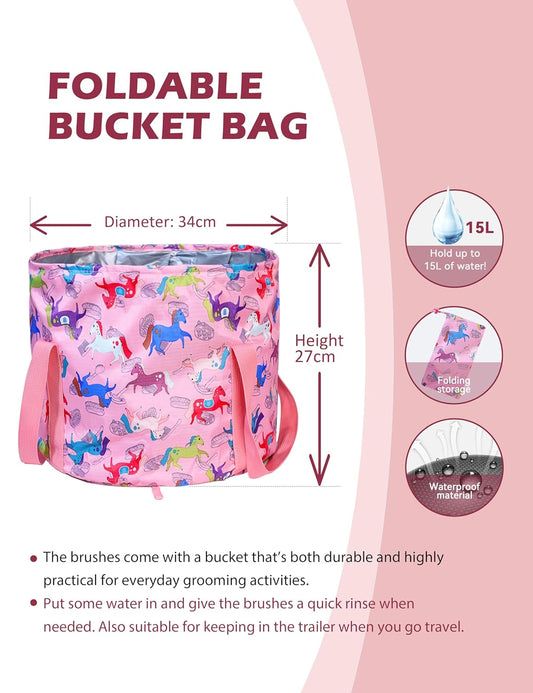 Harrison Howard Horse Grooming Kit 11-Piece Equine Care Series Horse Brush Sets with Organizer Tote Bag Tack Room Supplies Shedding Grooming Massaging Tools Pink Brushstroke Ponies