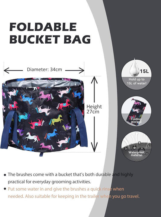 Harrison Howard Horse Grooming Kit 11-Piece Equine Care Series Horse Brush Sets with Organizer Tote Bag Tack Room Supplies Shedding Grooming Massaging Tools Blue Brushstroke Ponies