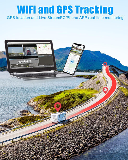 4CH 10.1 inch AI WiFi GPS RV Backup Camera Monitor System with Touch Screen and 4x1080P Waterproof Night Vision Cameras, Blind Spot Detection DVR Video Recorder for Truck Trailer Semi Camper Van Taxi