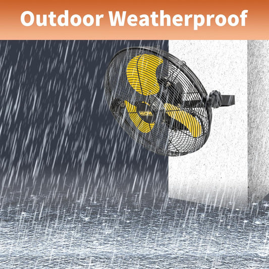 HiCFM 2600 CFM 14 inch Outdoor Wall Mount Fan, 3-Speed High Velocity Weatherproof Wall-Mounted Fans with IP44 Motor and Manual GFCI Plug for Patios, Greenhouse, and Gazebo - UL Listed