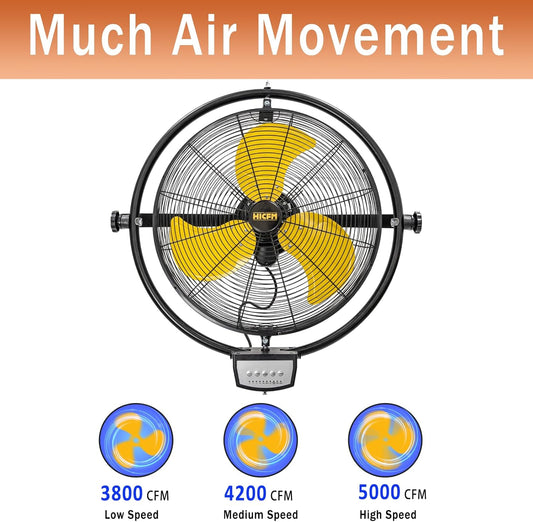 HiCFM 5000 CFM 20" Remote Control Wall Mount Fan, 3-Speed High Velocity Oscillating Wall Fans with Timer, Industrial Heavy Duty Wall-mounted Fan for Covered Patio, Gazebo, and Garage, UL Listed