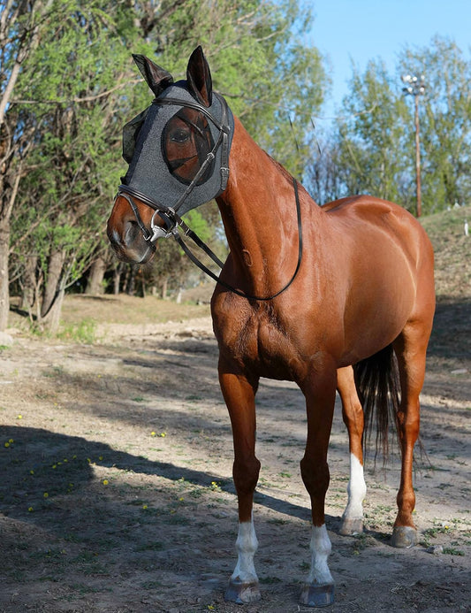 Horse Fly Mask with Ears, Comfortable Fit Stretch Fabric with UV Protection Soft on Skin Breathability for Small/Medium Size Horses (Gray)