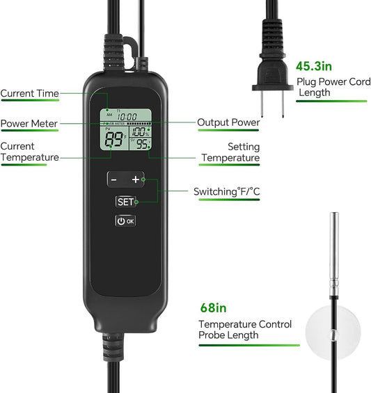 5.5 inch Reptile Heat Lamp Fixture with Thermostat and Timer,Reptile Light Fixture with Dimming Thermostat Max 100W,PID Temperature Controller for UVB Lights,Basking Heat bulbs and Terrariums