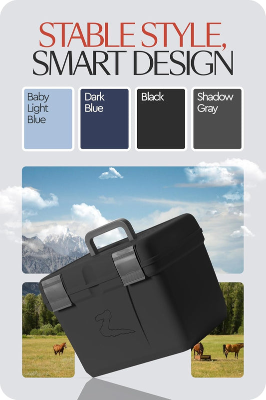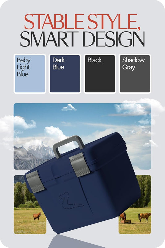 HORZE Smart Grooming Box for Horses, Dogs, Cats with Removable Tray | Non-Slip, Crack Resistant | 16" x 12" x 12" - Dark Blue - One Size