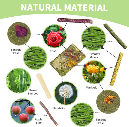 50-60 PCS Natural Rabbit Chew Toys, Treats, Timothy Sticks, Apple Sticks, Sweet Bamboo for Guinea Pig, Hamster, Chinchilla, Rat, Small Animals