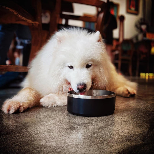 IKITCHEN Dog Bowl for Food and Water, 64 Oz Stainless Steel Pet Feeding Bowl, Durable Non-Skid Double Wall Insulated Heavy Duty with Rubber Bottom for Medium Large Sized Dogs (64 Ounces/8 Cup, Black)