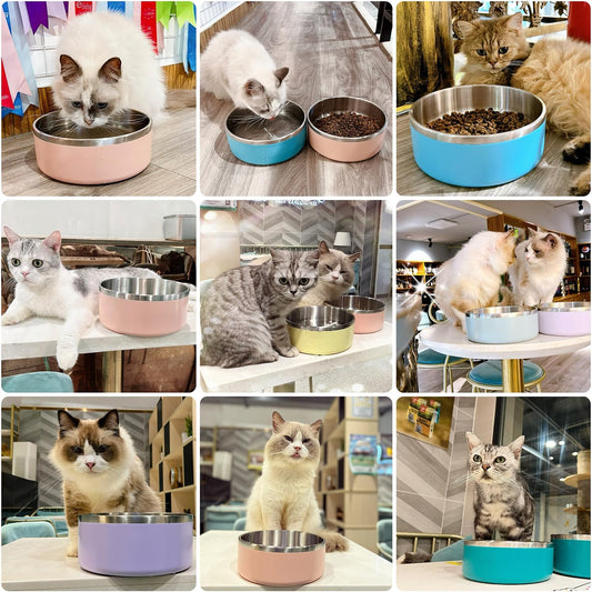 IKITCHEN Dog Bowl for Food and Water, 64 Oz Stainless Steel Pet Feeding Bowl, Durable Non-Skid Double Wall Insulated Heavy Duty with Rubber Bottom for Medium Large Dogs (64 Ounces/8 Cup, Pink)