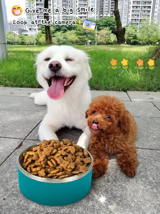 IKITCHEN Dog Bowl for Food and Water, 40 Oz Stainless Steel Pet Feeding Bowl, Durable Non-Skid Double Wall Insulated Heavy Duty with Rubber Bottom for Medium Large Dogs (40 Ounces/5 Cup, White)
