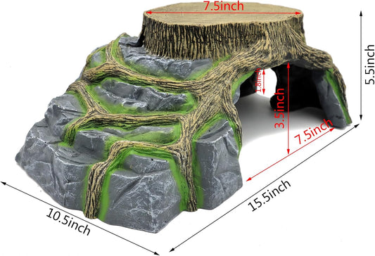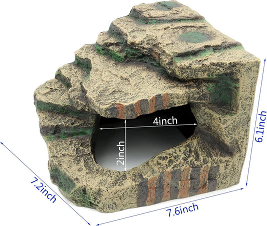 JIHAQUA Reptile Rock Hide Cave, Aquarium Habitat Decor Rock Tortoise Hideout for Lizards, Turtles, Reptiles, Amphibians, Fish