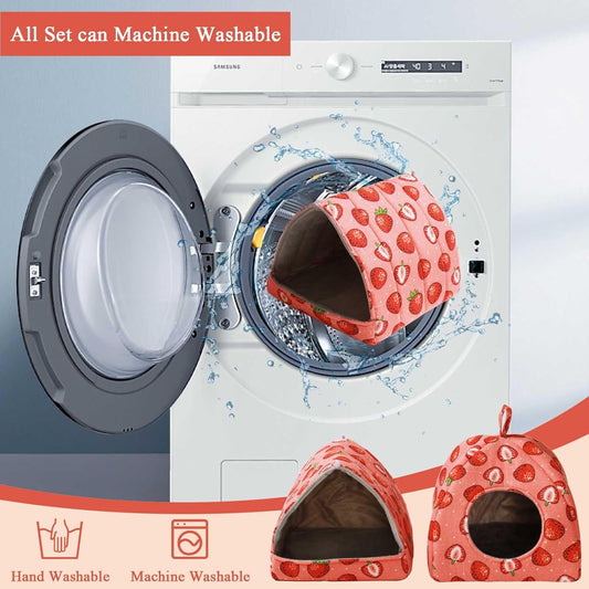 JSPYFITS Guinea Pig Hideout Bed Rabbit House Cave Accessories Cozy Hide-Out Guinea Pig Bed Washable Cage for Small Pet Hamster Ferret Rabbit Bunny Pink Strawberry
