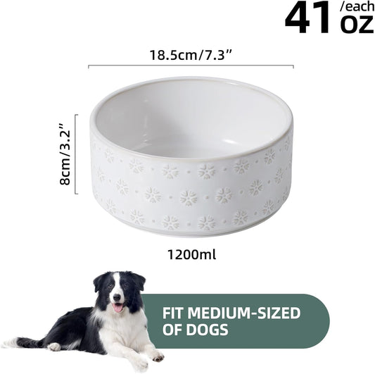 7.3inch Ceramic Dog Bowl, Food and Water Bowl for Medium Breed Dog, Pet Bowl for Replacement (Single Bowl, Arctic White)