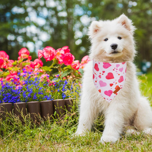 E-Clover Cute Dog Bandana & Matching Scrunchie-Heart Dog Bandanas Red Pet Scarf Bib for Medium Large Dogs Girl Boy Owner Mothers Day Mom Gift