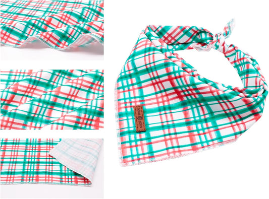 Lionet Paws Christmas Dog Bandana for Small Medium Dogs,Green Grid Dog Kerchief Washable Dogs Triangle Bibs Scarf for Girl or Boy