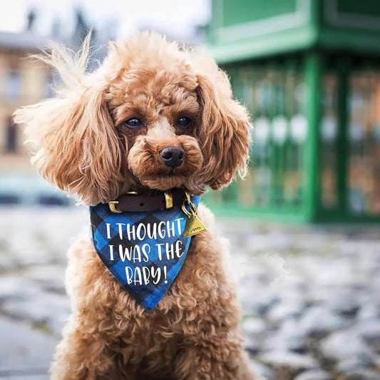 I Thought I was The Baby Funny Red Plaid Cotton Pet Dog Triangle Bandana Bibs, Pet Dog Gender Reveal Pregnancy Announcement Photograph Scarf Photo Props Birthday Party for Pet Dog Lovers Gifts