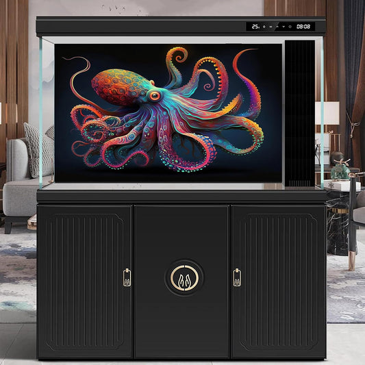 Octopus Aquarium Background Exquisite Colorful Octopus Terrarium Background Glowing Octopus on Black Background Fish Tank Backdrop Octopus Backdrops Poster Wallpaper Decorations Vinyl 36x20in