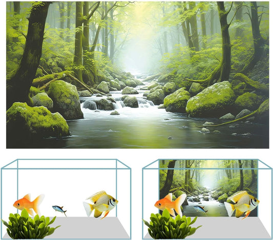 AWERT Aquarium Background River Bed & Lake Aquatic Plant Fish Tank Background Vinyl 48x18 inches