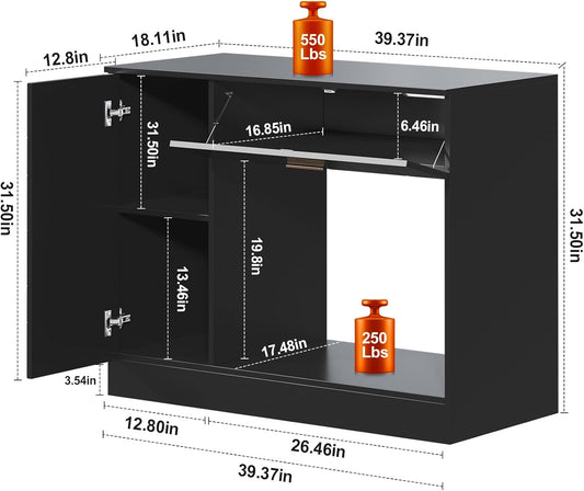 Heavy-Duty 40 Gallon Aquarium Stand, Modern Dual Tank Cabinet with Hidden Cord Organizer & 550lbs Capacity, 30-50 Gallon Fish Tank Stand, Waterproof and Adjustable Shelf, Black
