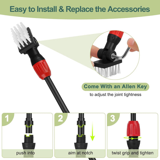 AQQA Aquarium Cleaning Tools Multifunctional 6-in-1 Fish Tank Cleaning Kits with Telesopic Handle Alage Scraper Sponge Scrubber Stiff Brush Plant Fork Gravel Rake Fish Net