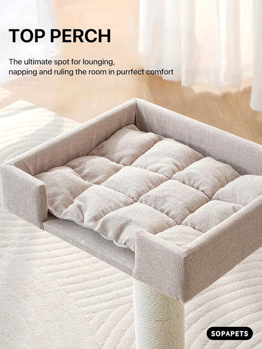 PEQULTI Cat Tree Modern Cat Tower for Indoor Cats,Multilevel Cat Play House with Large Condo, Spacious Hammock, Cozy Top Perch,Scratching Post and Dangling Balls